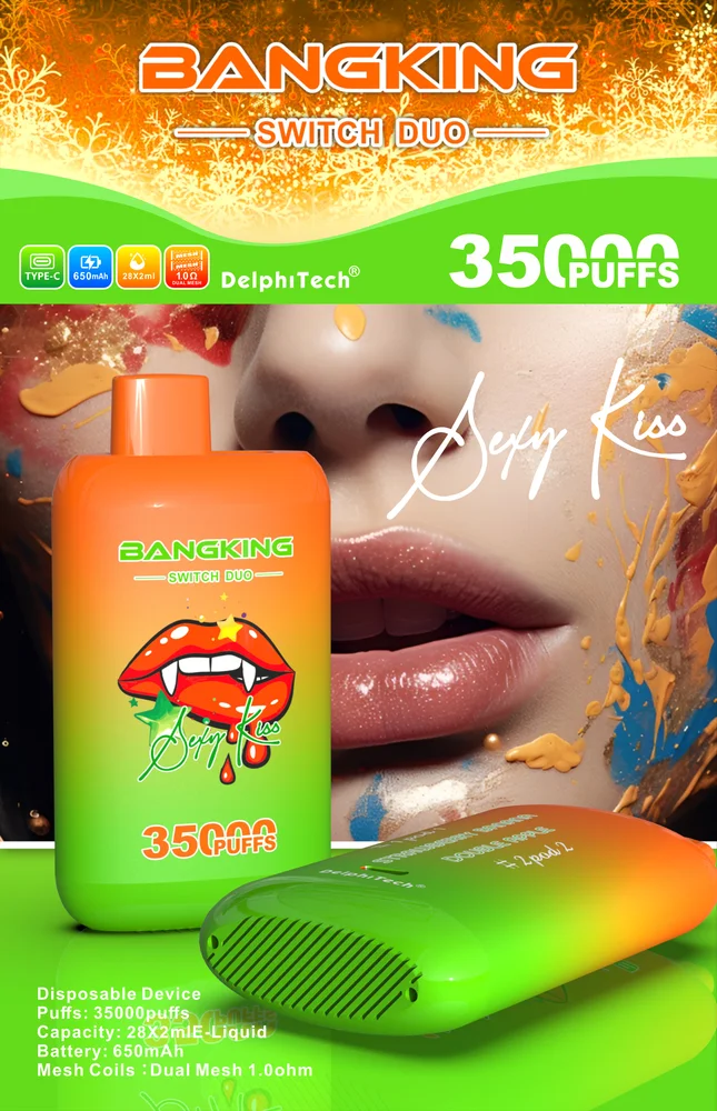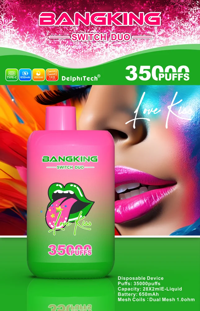 BANG KING 35000 Puffs Switch Duo VapoPL to nowoczesne rozwiązanie dla użytkowników poszukujących różnorodności i trwałości w jednym urządzeniu. Innowacyjny podwójny zbiornik z przełącznikiem smaków pozwala na zmianę w smaku w sekundach, eliminując potrzebę posiadania kilku e-papierosów jednocześnie. 35 000 zaciągnięć i 72ml płynu gwarantują długotrwałe użytkowanie (2-3 tygodnie), a bateria 650mAh z szybkim ładowaniem Type-C minimalizuje przerwy w użytkowaniu. Element grzewczy siatkowy 1,2Ω zapewnia intensywny smak i miękki dym, a regulowana dopływ powietrza dostosowuje urządzenie do indywidualnych preferencji inhalacji. 12 unikalnych kombinacji smaków oraz certyfikaty UE (CE, ROHS, FCC) czynią ten produkt liderem na rynku jednorazowych e-papierosów z podwójnym zbiornikiem – idealnym wyborem dla hurtowników i detalicznych sprzedawców w Europie.