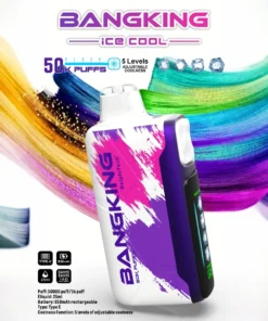 Bang King 50000 Ice Cool – e-papieros jednorazowy z orzeźwiającym smakiem lodu, wysoką pojemnością i komfortowym użytkowaniem. Produkt dla dorosłych, dostępny w VapoPL.